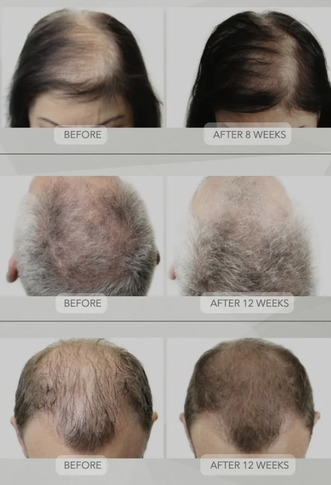 Patients that respond to treatments for hair loss, will often see results over the course of several weeks or months. Individual results vary. Depending on the treatment regimen, most clients will begin seeing results after 3-4 procedures.